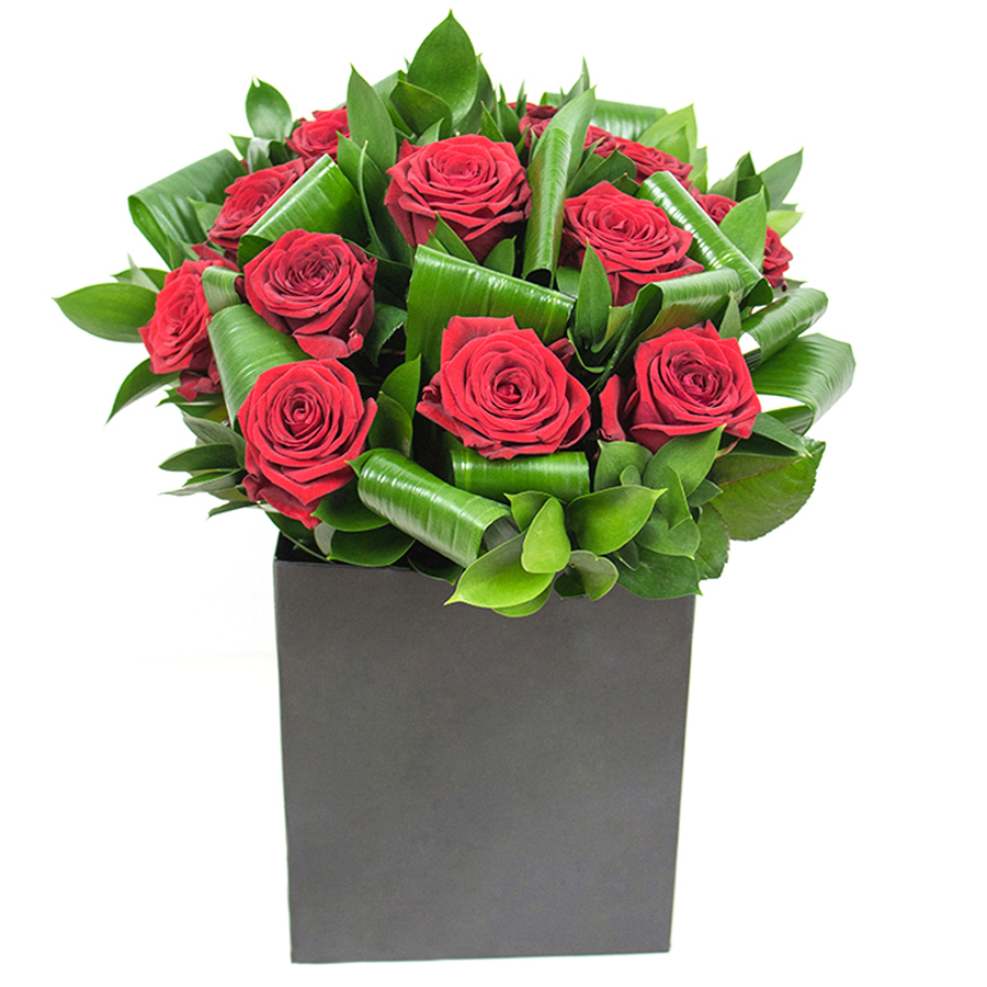 Discover an arrangement that epitomizes luxury and style. Our bouquet combines the intensity of red roses with the sophisticated green of aspidistra leaves and ruscus, forming a striking display perfect for any setting. Hand-selected to ensure everlasting freshness, each flower promises to enliven your space with its vibrant charm.