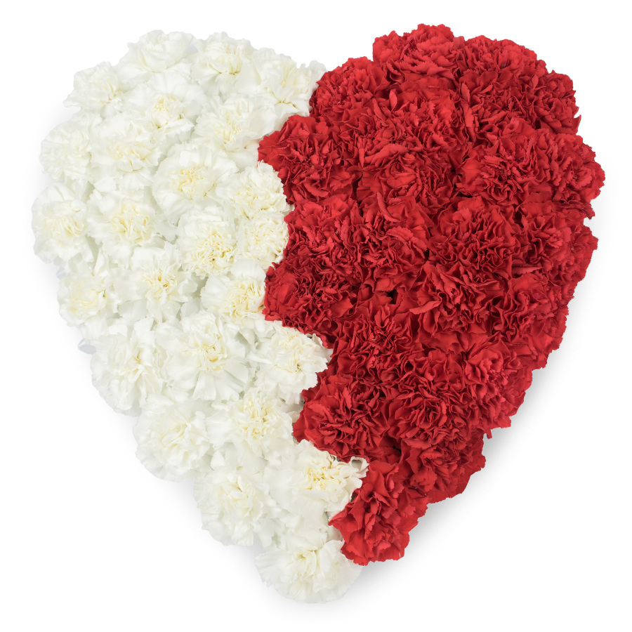 Our Heart Designed Mixed Carnations by Handy Flowers showcases the exquisite beauty of white and red carnations, ideal for conveying your deepest sympathies.